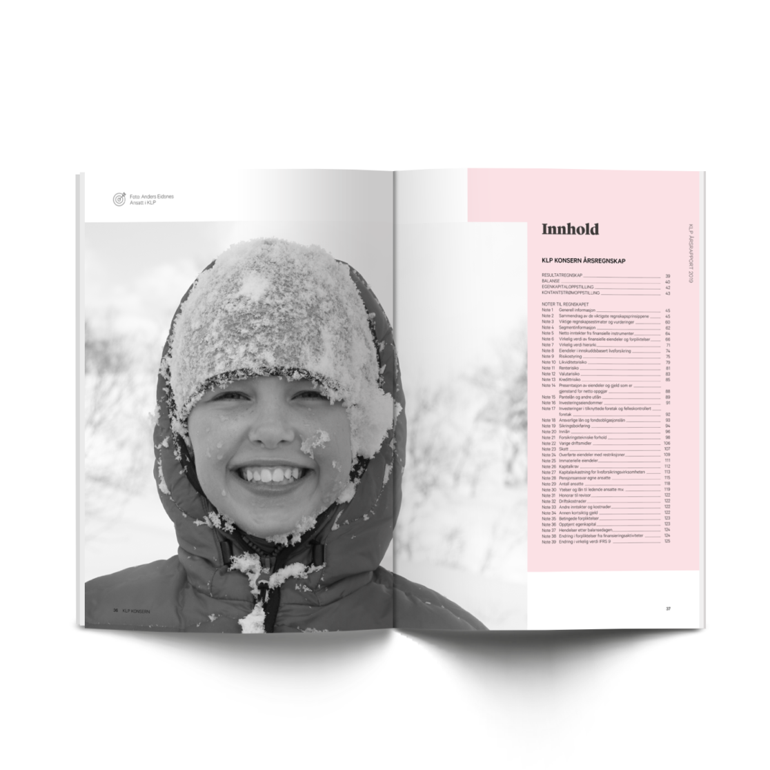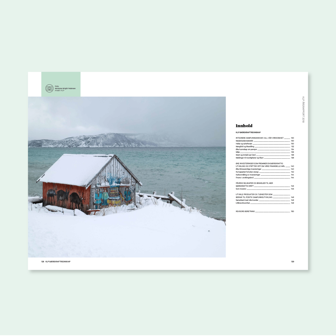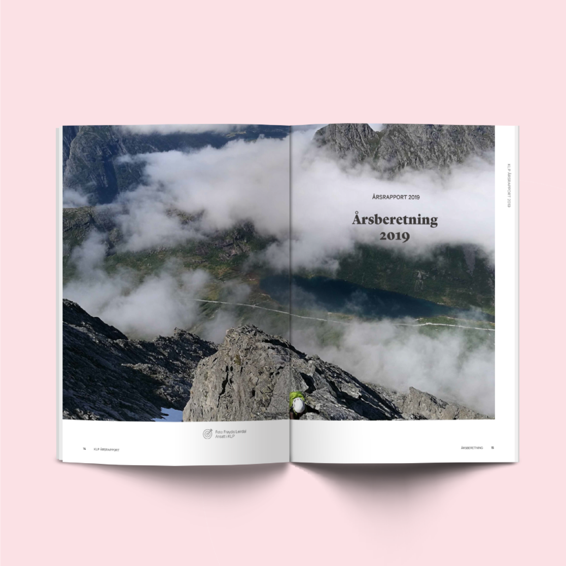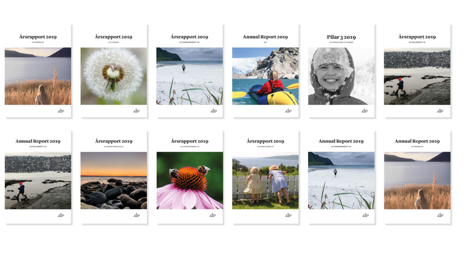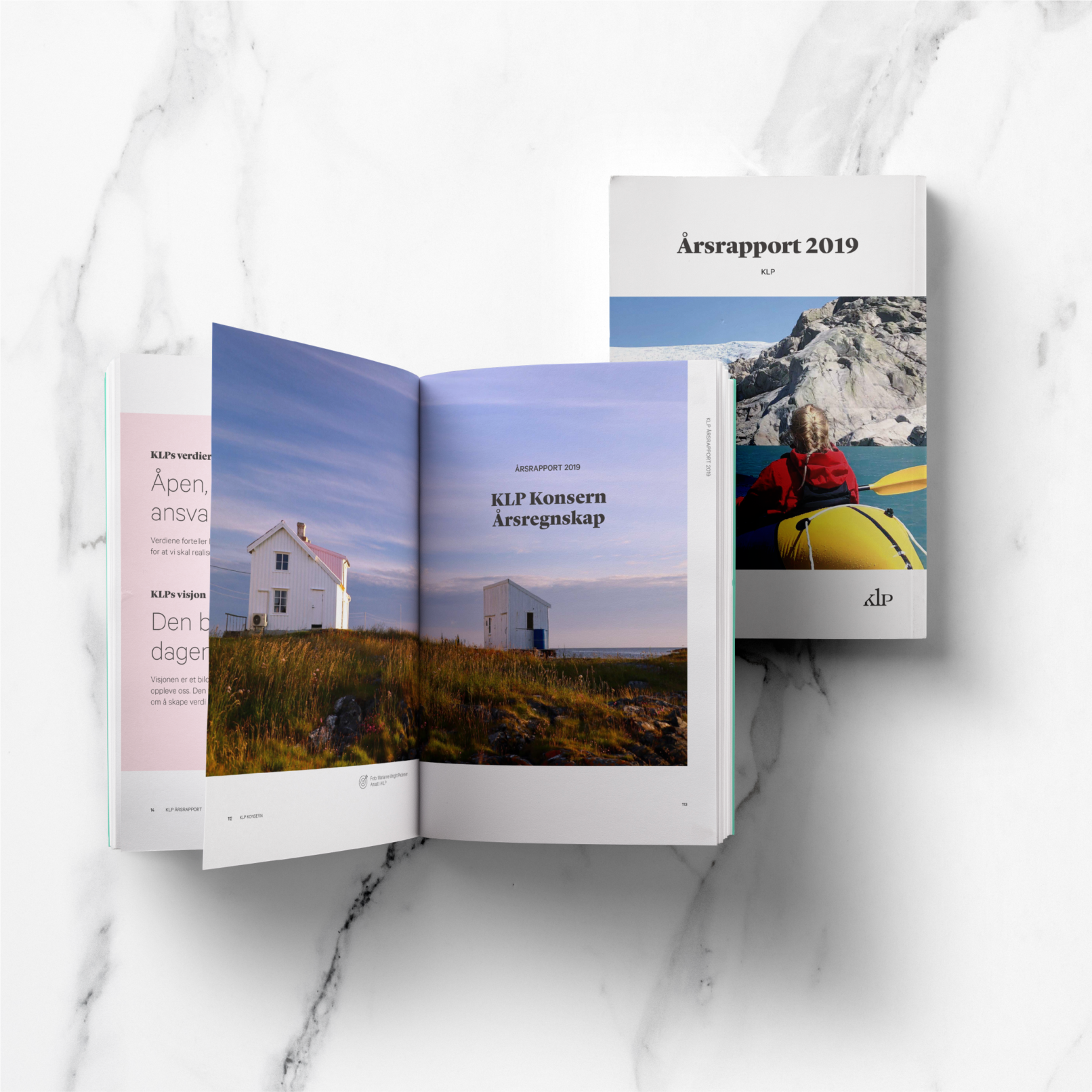 Pensjonsselskapet KLP har vi samarbeidet med og designet årsrapporter for i 3 år (2017/2018/2019). Disse rapportene vant alle henholdsvis Bronsje/Gull/Gull i Farmandprisen. Gøy jobb å gjøre!
