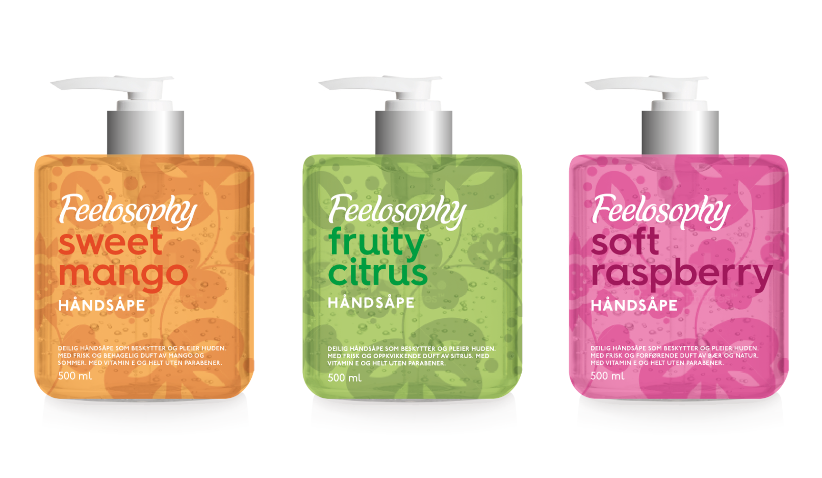 Bardus Design har utviklet navn og emballasje for Feelosophy kroppspleie for Apotek 1. En fresh og fargerik serie med mange hudpleieprodukter til kropp, ansikt og hånd.
